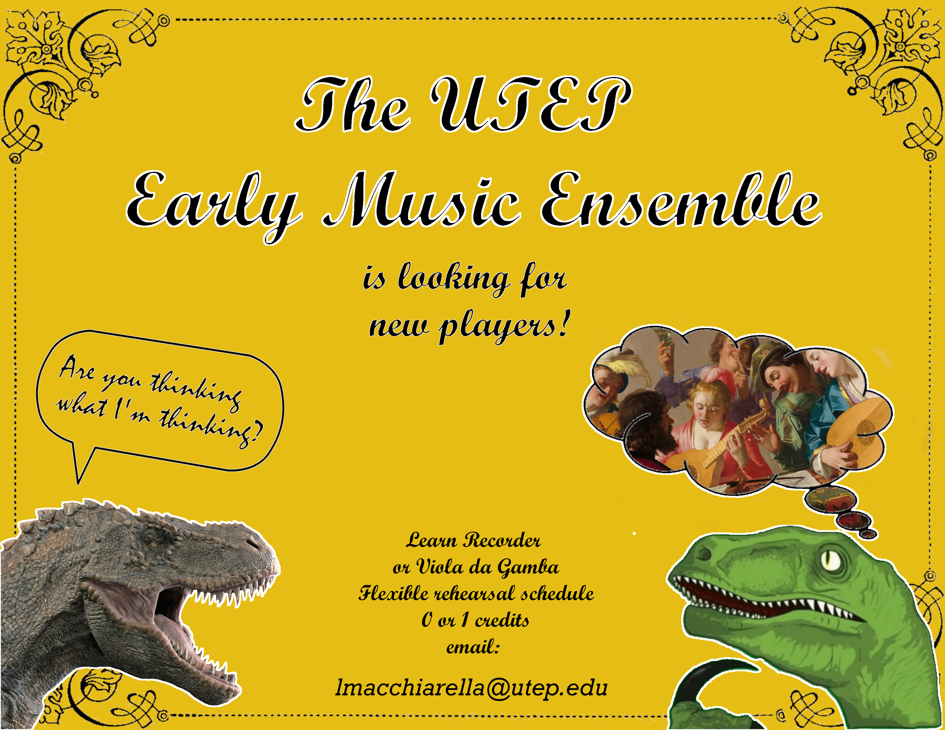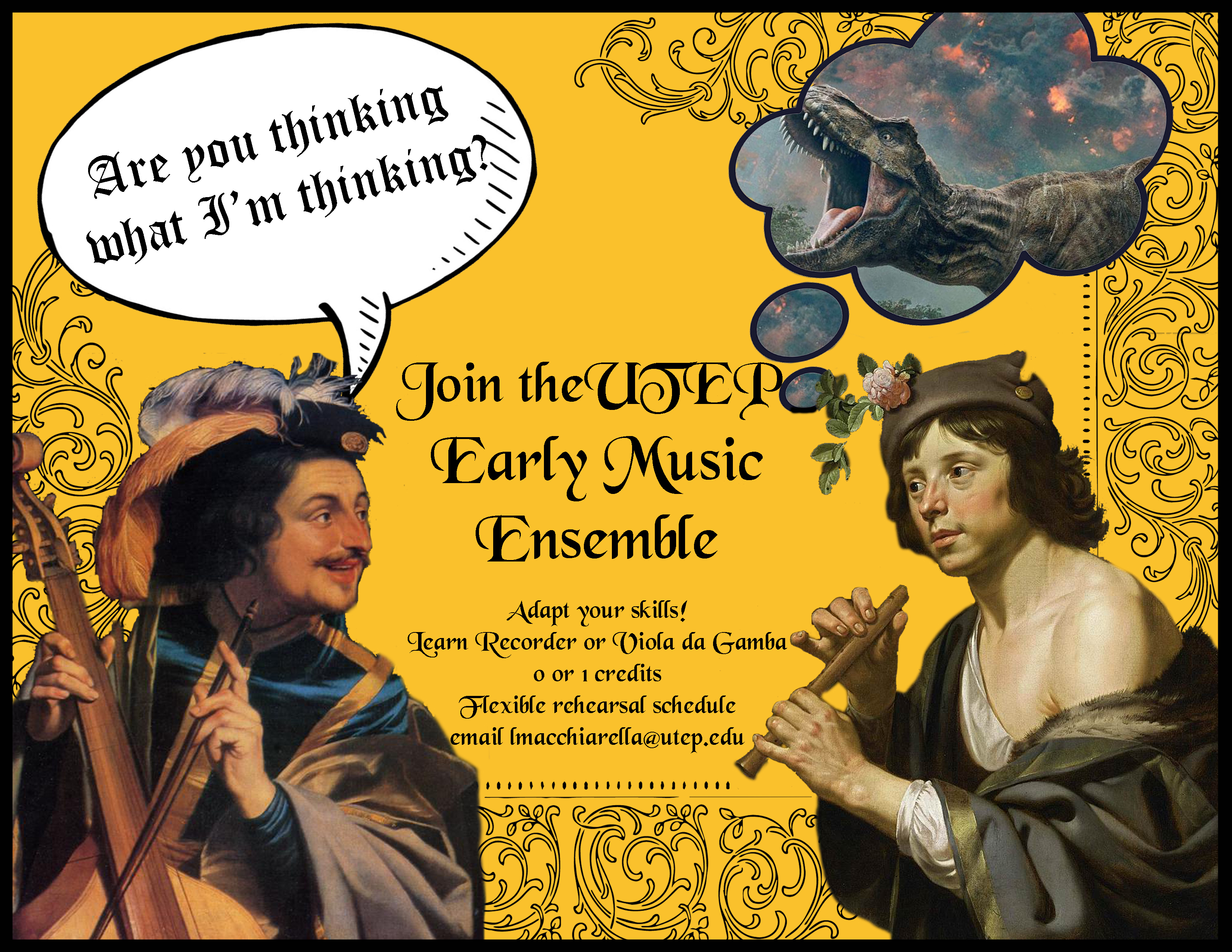 Lindsey Macchiarella is co-founder of the early music performing groups, Sprezzatura, and the Society of Forgotten Instruments. She is also the founder and director of the UTEP Early Music Ensemble and the UTEP Collegium Musicum.